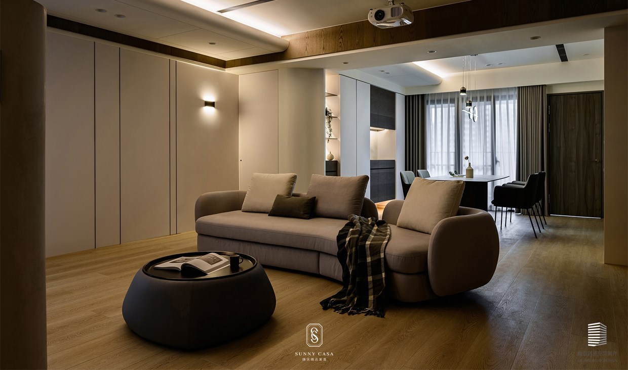 This sofa, crafted with a curved design, exudes a soft and sensual allure, calming the chaotic mind within its rounded curves. Its expansive design showcases the intricate details of the fabric, with recurring soft elements embodying an extremely comfortable home feel. Through a balanced aesthetic of lines and materials, its encompassing design enhances visual roundness and fullness, offering a warm and cozy custom sofa that complements various home styles with its gentle temperament.